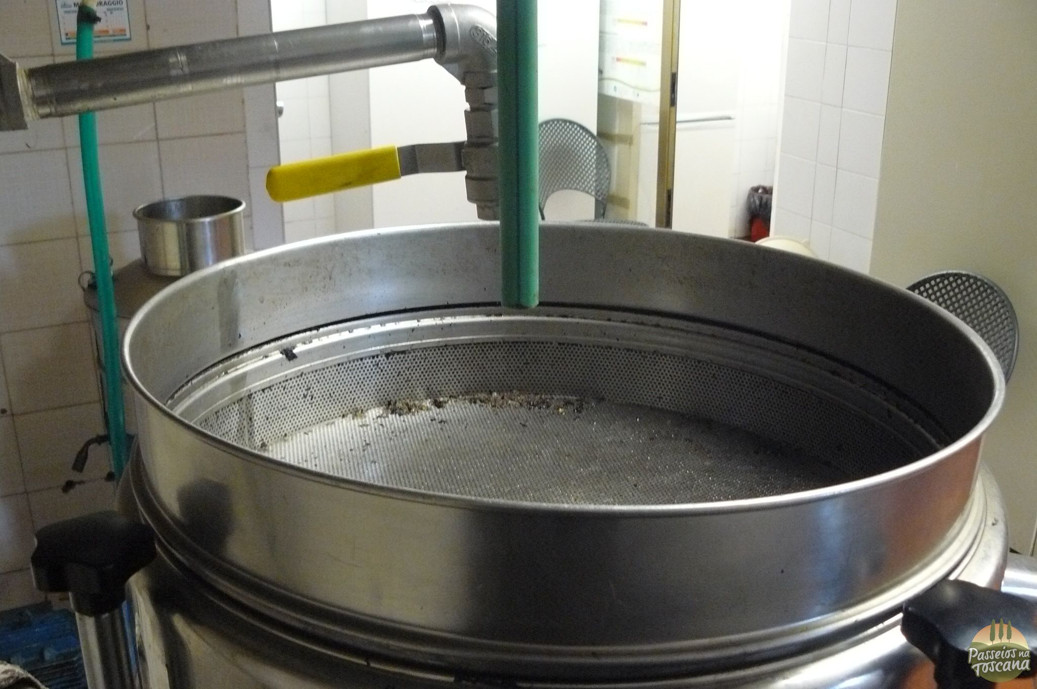 Após a colheita, as azeitonas são levadas para o “Frantoio“, local onde são prensadas as azeitonas e produzido o azeite extra-virgem ou virgem de oliva.