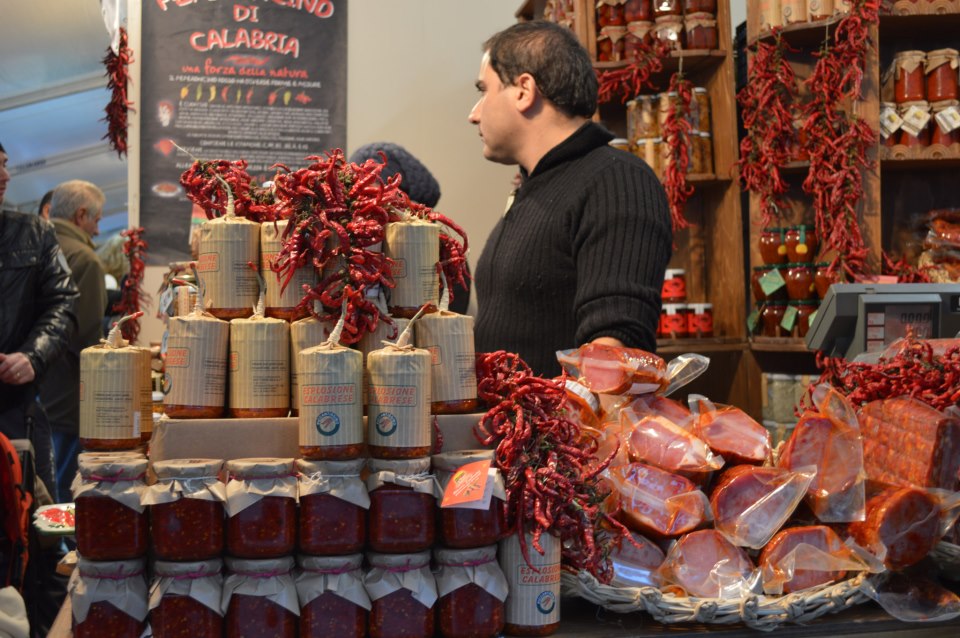 No Mercado, encontramos barracas não só que vendem o tartufo, mas também barracas de vinho, produtos típicos, artesanato, etc.
