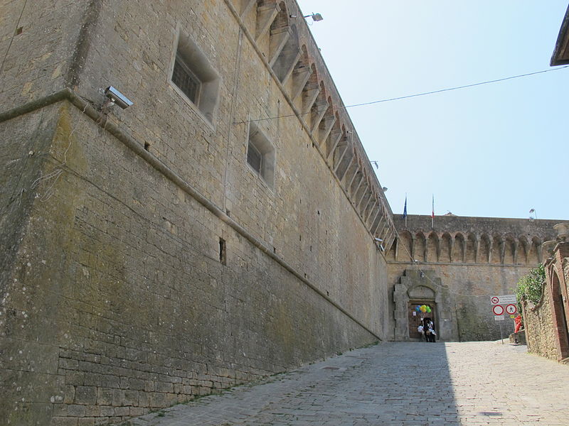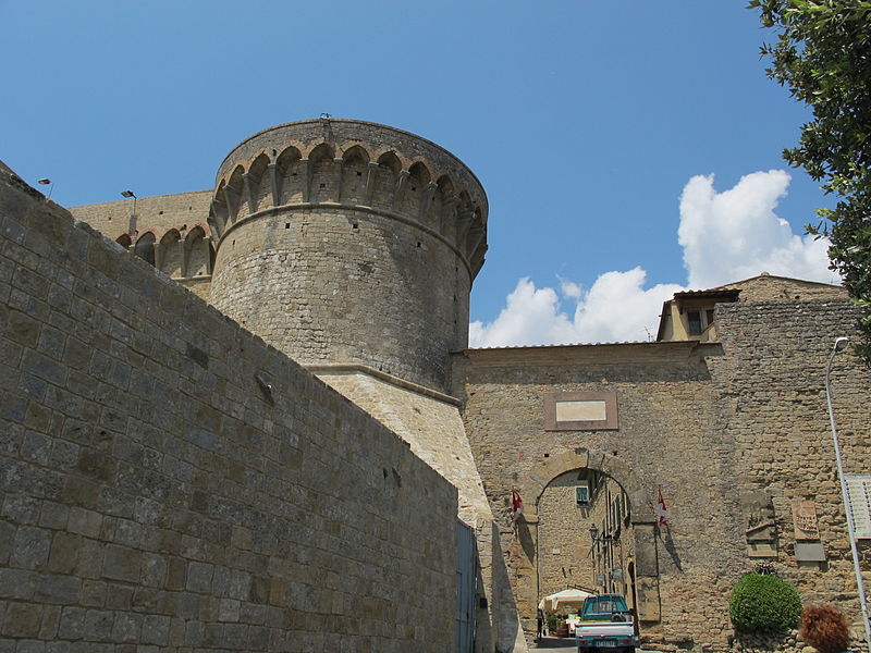 Do alto da colina, a Fortezza Medicea é visível a quilômetros de distância e apresenta o perfil da colina em que a cidade foi construída,  em 1474, exatamente dois anos após a cidade de Florença vencer uma guerra amarga pelo controle das minas de alume de Volterra, um mineral importante usado na fabricação de têxteis, é um sulfato duplo de alumínio e de potássio, o alume tem sabor adstringente e serve para fixar as tintas e clarear as águas. A intenção era apenas para proteger a cidade, mas principalmente para mantê-lo sob controle e evitar rebeliões.