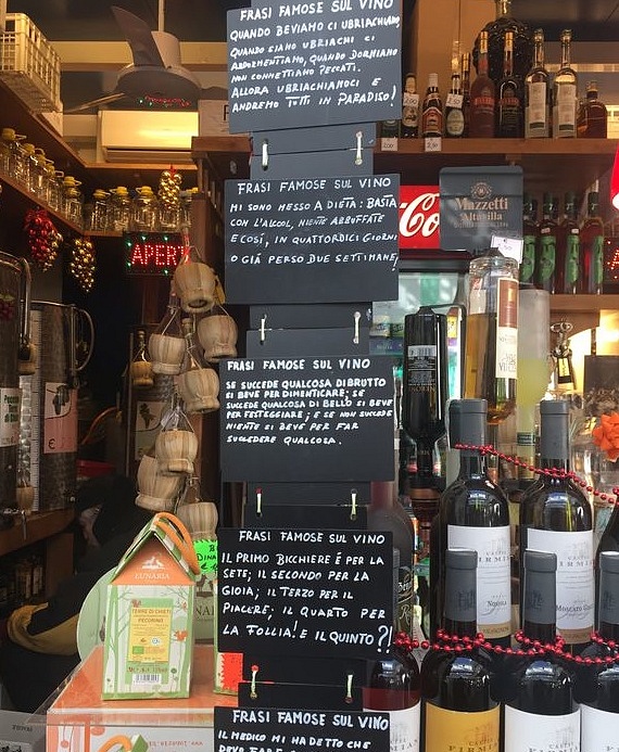 Orazio, um dos maiores poetas da antiguidade, mestre da ironia e da arte de viver, disse: “nessuna poesia scritta da bevitori d’acqua può piacere o vivere a lungo”(nenhuma poesia escrita por bebedores de água pode agradar ou sobreviver muito). Para aqueles que querem trazer um pouco de poesia em sua vida, a loja n. 7 é ponto obrigatório, porque aqui há vinhos que são a poesia da terra e são ideais para quem gosta de beber bem e viver bem (tipo eu, hahah)!