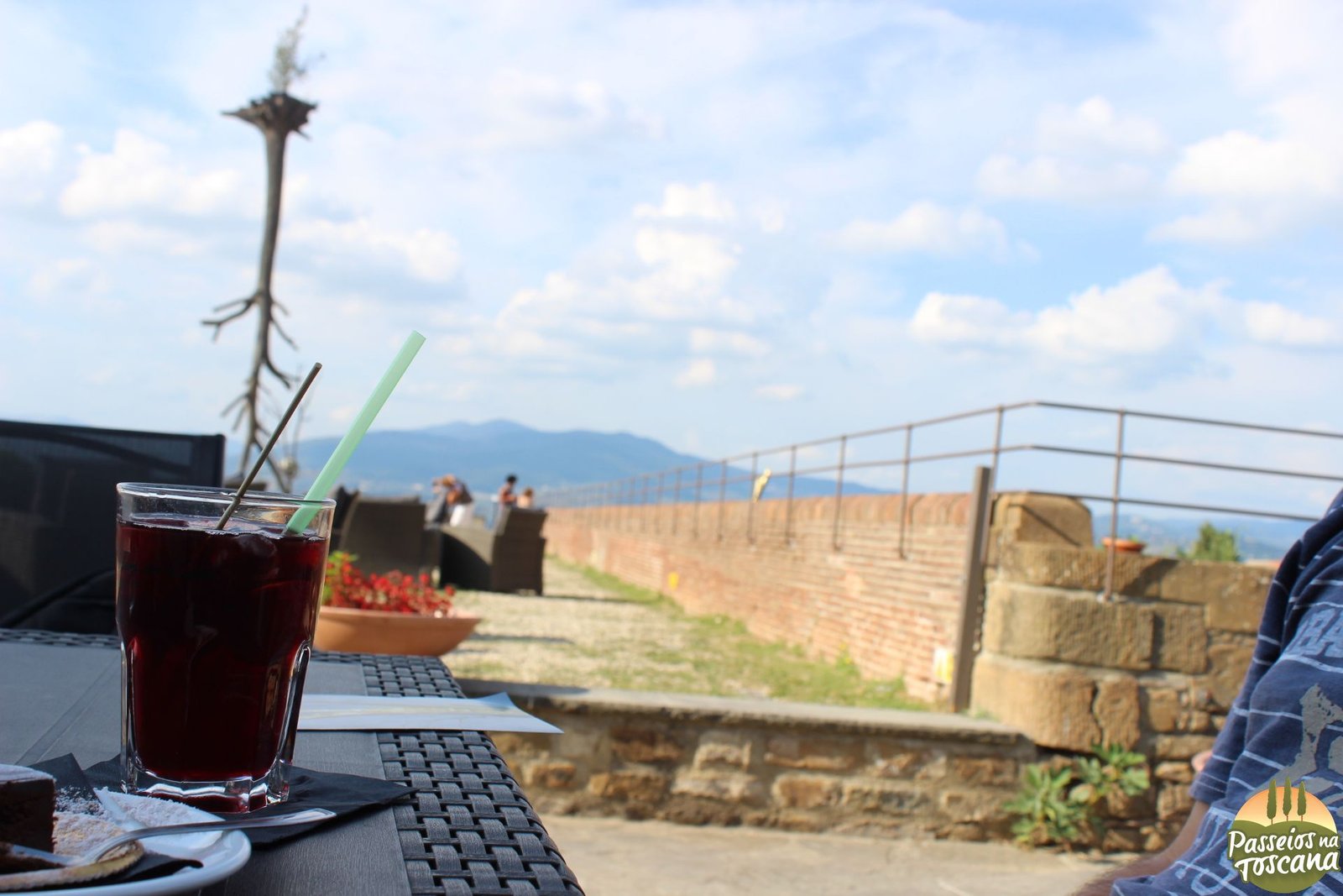 - Rinascente ***–> Na loja Rinascente (ótima opção de shopping), há um bar bem pequeno com um terraço, que eles abrem durante o horário de abertura da loja (ate as 21 no verão) que serve alguns drinks e lanches rápidos. Bom, não é que sentada na mesa você vê muito, há um muro alto, é possível ver somente a parte mais alta como as torres e cúpulas e para ter “a vista de Florença”, precisa estar em pé, ao encostar no muro você verá uma das visões mais legais do centro, realmente é uma perspectiva bem diferente … portanto é ótimo para fotografar, mas para admirar a vista bebendo um drink não direi. Drinks 8 a 9 euros.