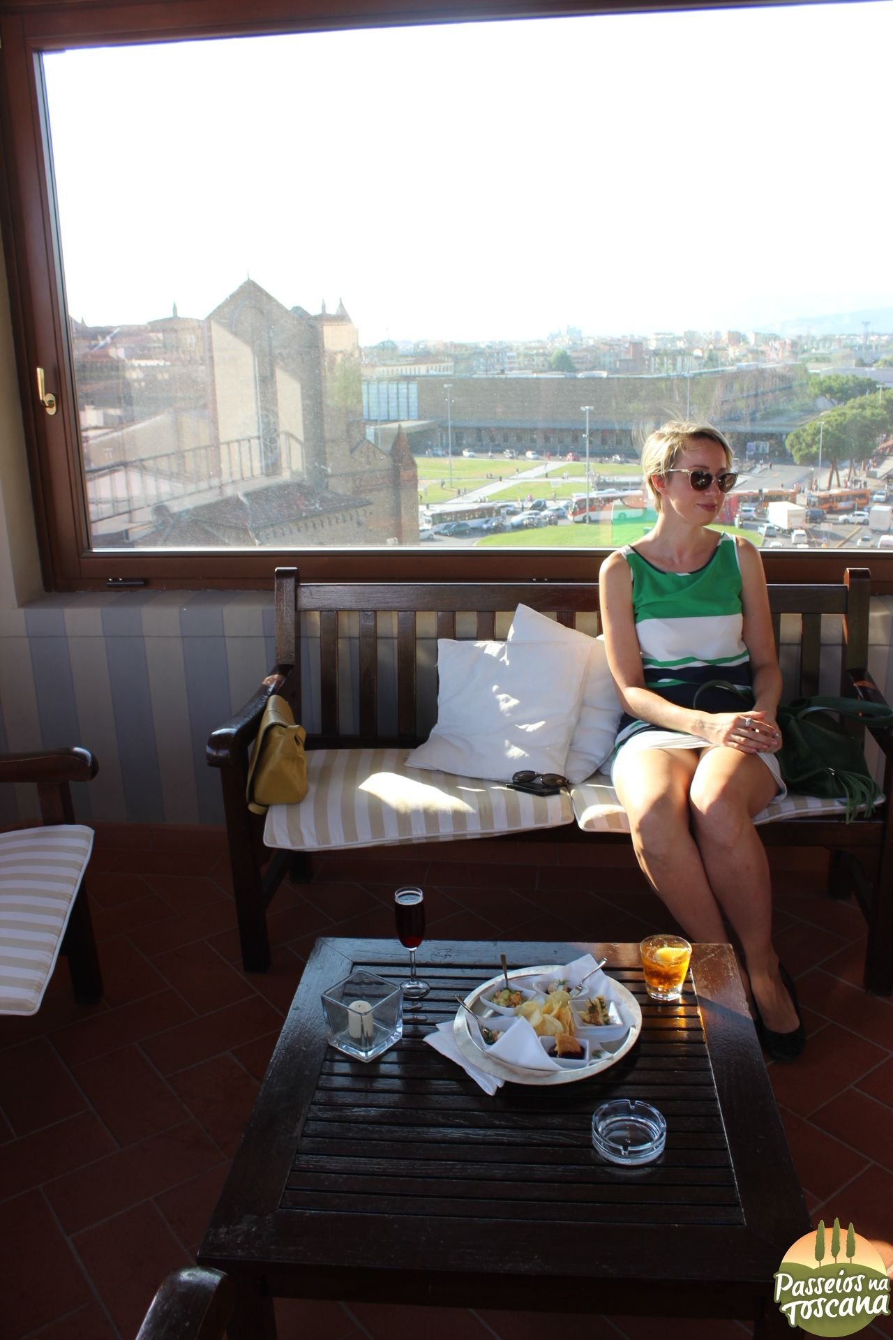 - Grand Hotel Minerva * –> Não há um Florentino que não conheça este local de aperitivo no verão, sempre cheio, fica no último andar do Hotel, lá há 2 lados, a Pool & Solarium Terrace, onde fica a piscina do terraço e o Chiostro Terrace, com o Rooftop Bar 360°, e somente neste há uma vista maior sobre a cidade. O espaço não é muito grande, tem um buffet bem apetitoso, com frutas, e ainda serve pratos light, alguns dias da semana tem Dj set. Não faça como eu, evite sábados no final do dia… ficarás horas a espera de uma mesa! Hotel 4 estrelas.