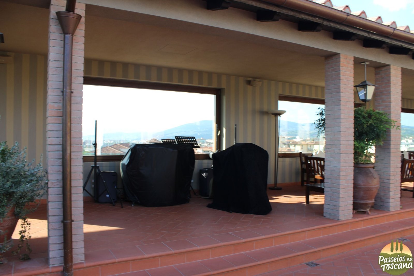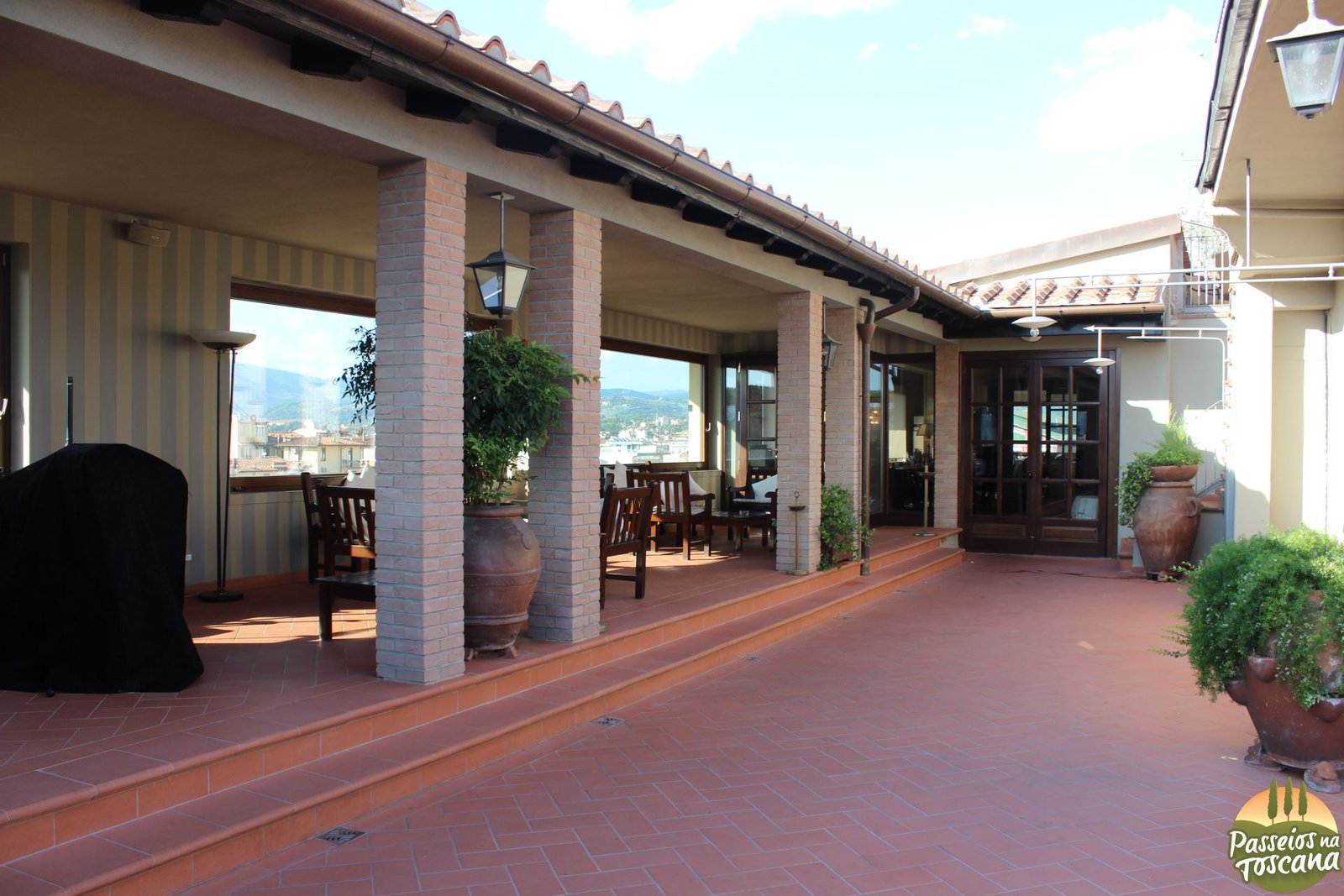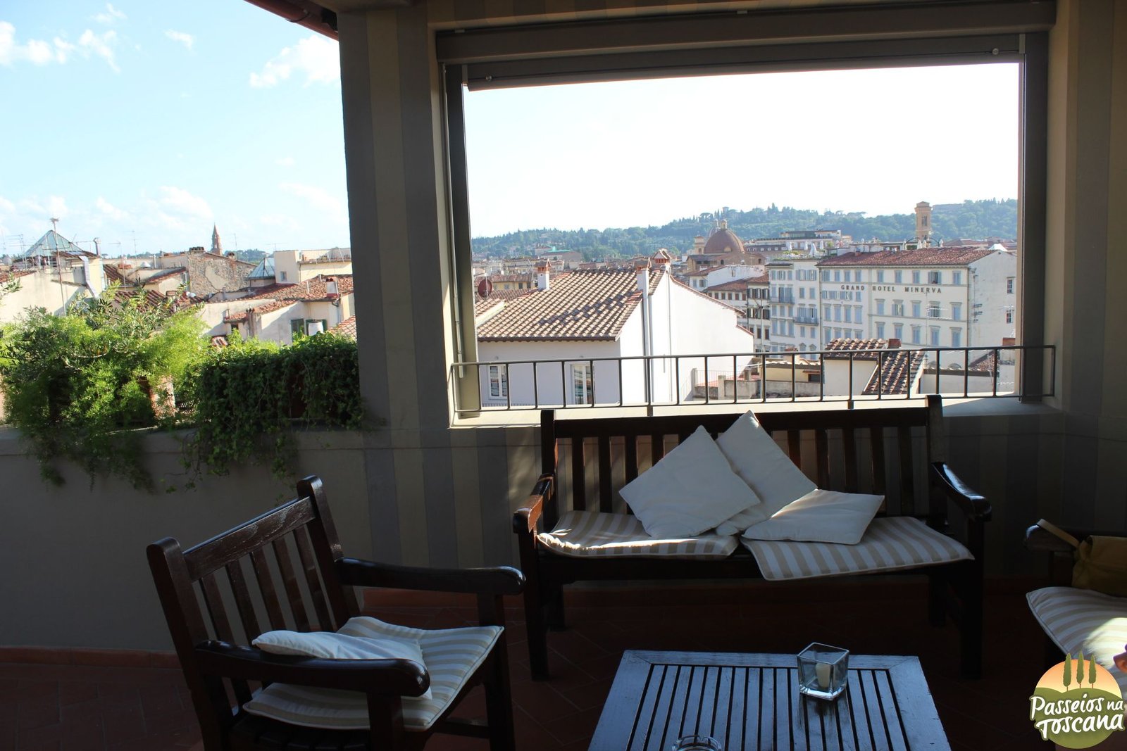 - Hotel La Scaletta *—> Hotel 3 estrelas fora do centro, do outro lado do Rio Arno. Esse eu conheci quando busquei uma cliente, há uma vista a 360° do Palazzo Pitti, Jardim de Boboli e Palazzo Vecchio com o Duomo.