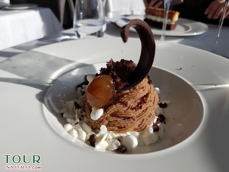 A minha entrada com topinambur foi excelente, assim como o doce, que foi o melhor que comi em Roma, com certeza! A conta então ficou 124 para nós duas, o que na minha opinião pela vista que possui, pelo nível do local e pela comida, valeu.